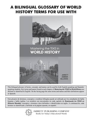 How can your students be expected to remember all of the people, places, and events of four thousands years of history, covering all world cultures? This glossary can help them do it. It is more than a simple glossary. It is a compendium of all the essential people, places, terms, and events they should know. The terms are organized by chapter, in the same order in which they appear in Mastering the TEKS in World History.